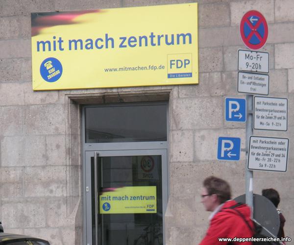 Eben in der Tagesschau um 20.15 Uhr im Hintergrund eines Politiker-Interviews zu sehen: das “mit mach zentrum” der FDP (=Freie Deppenleerzeichen Partei) .